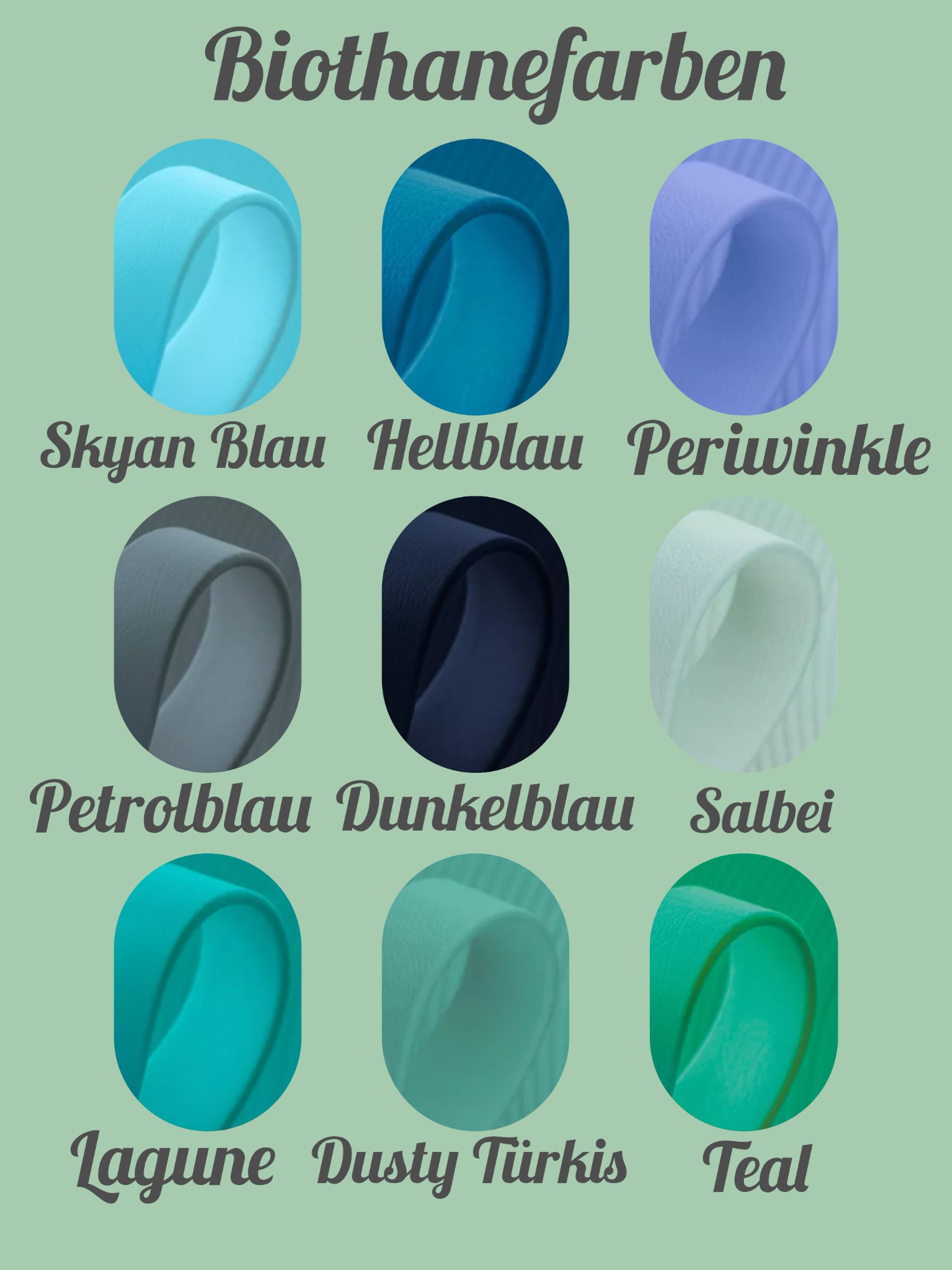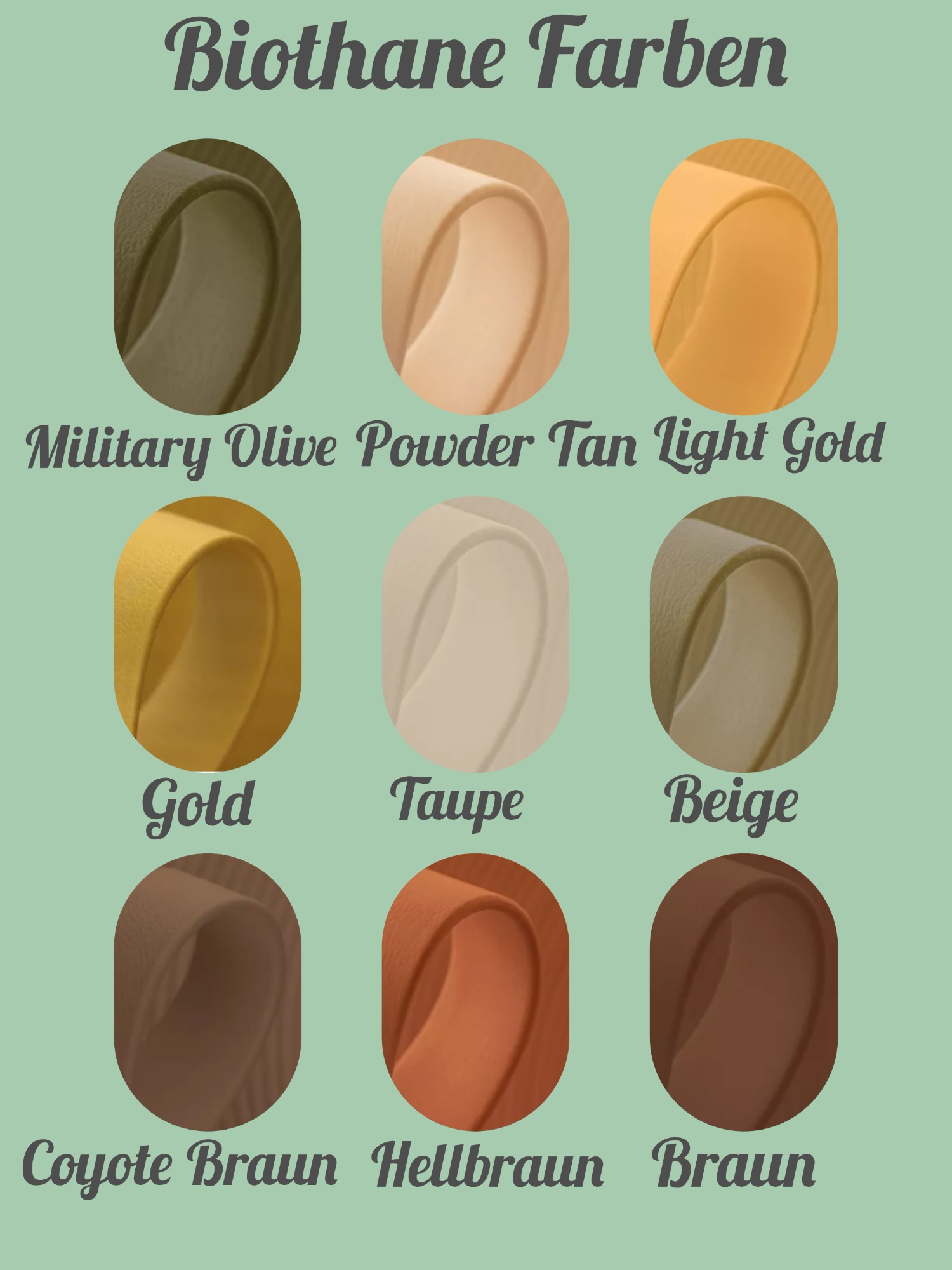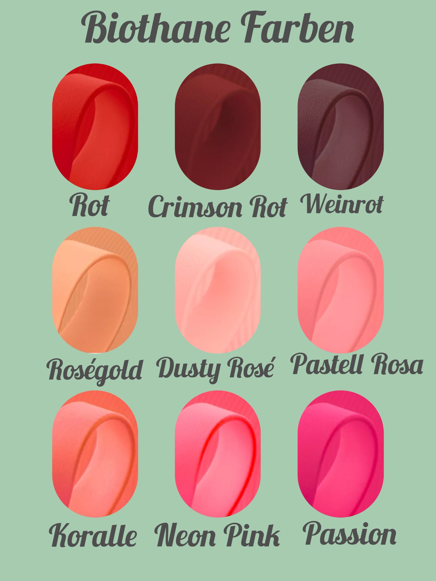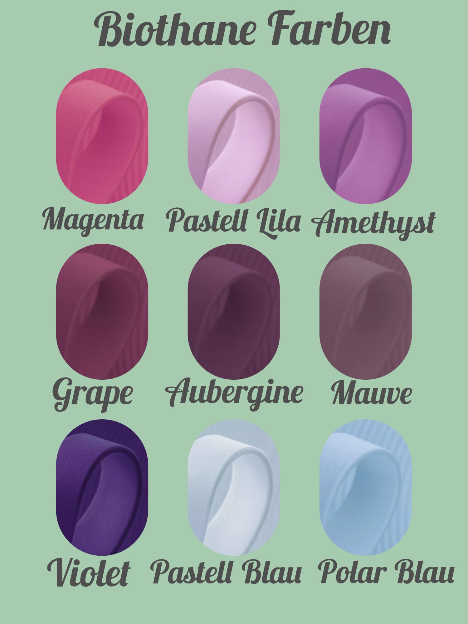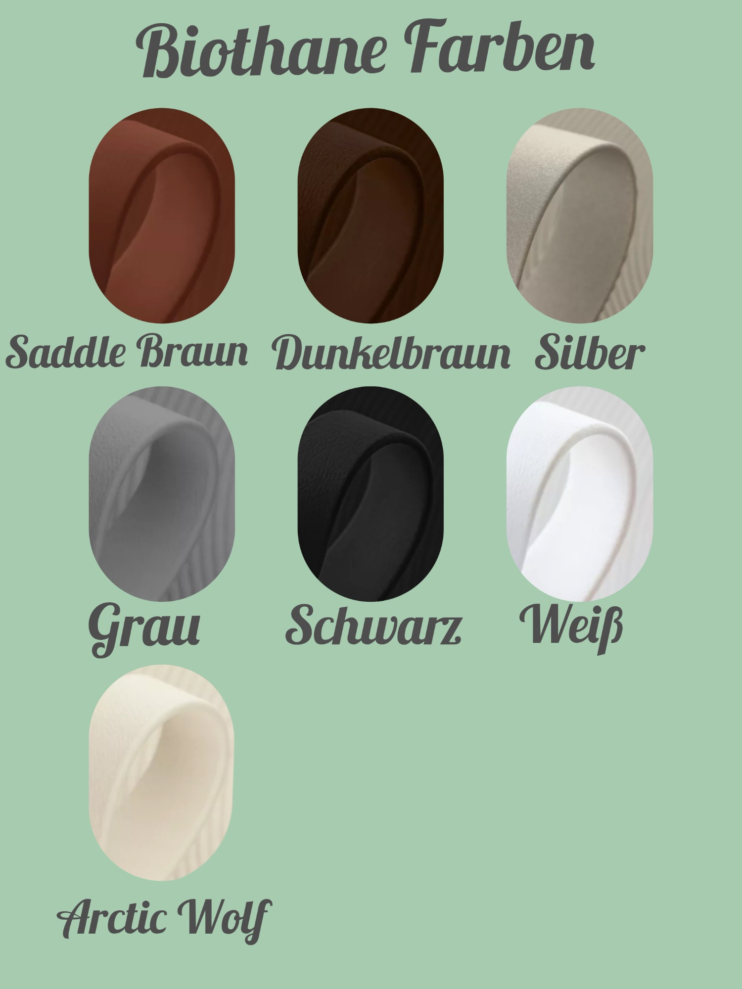 Biothane ist ein robustes, stabiles, pflegeleichtes, UV-resistentes, farbechtes und wasserfestes Gurtband.