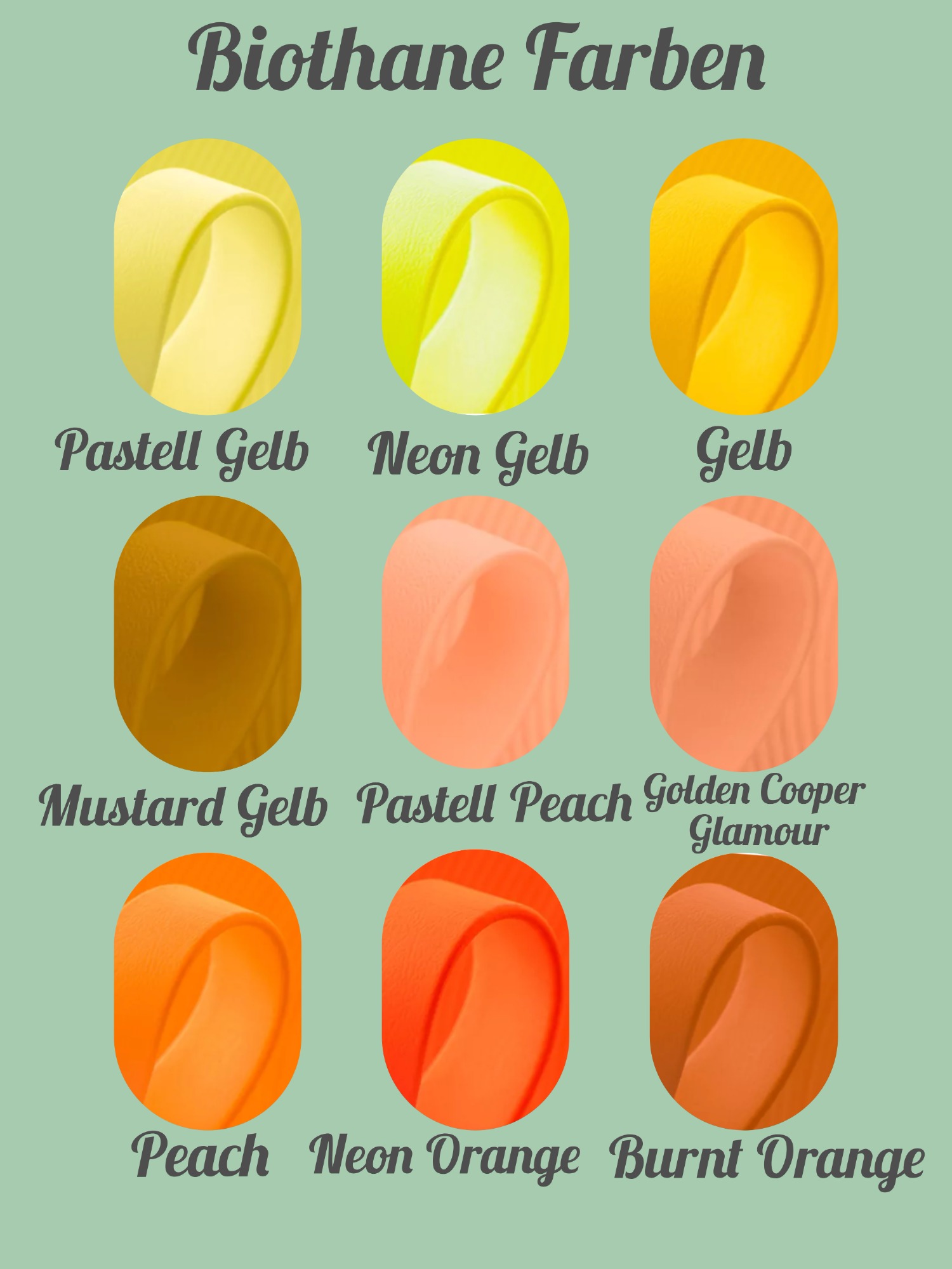 In der Breite 50mm stehen zur Zeit nur die Farben : Weiß, Neonorange, Dunkelbraun und Schwarz zur Auswahl.